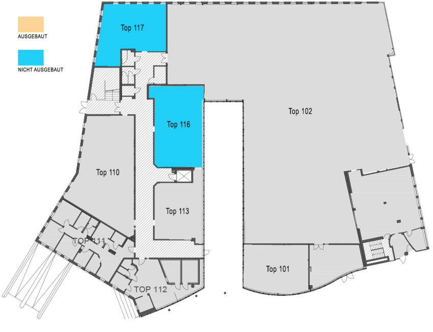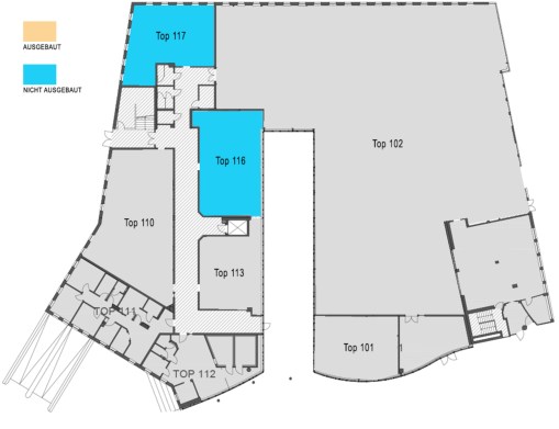Die Tops 116 und 117 sind unausgebaut und können gemeinsam nach jeweiligem Bedarf ausgebaut